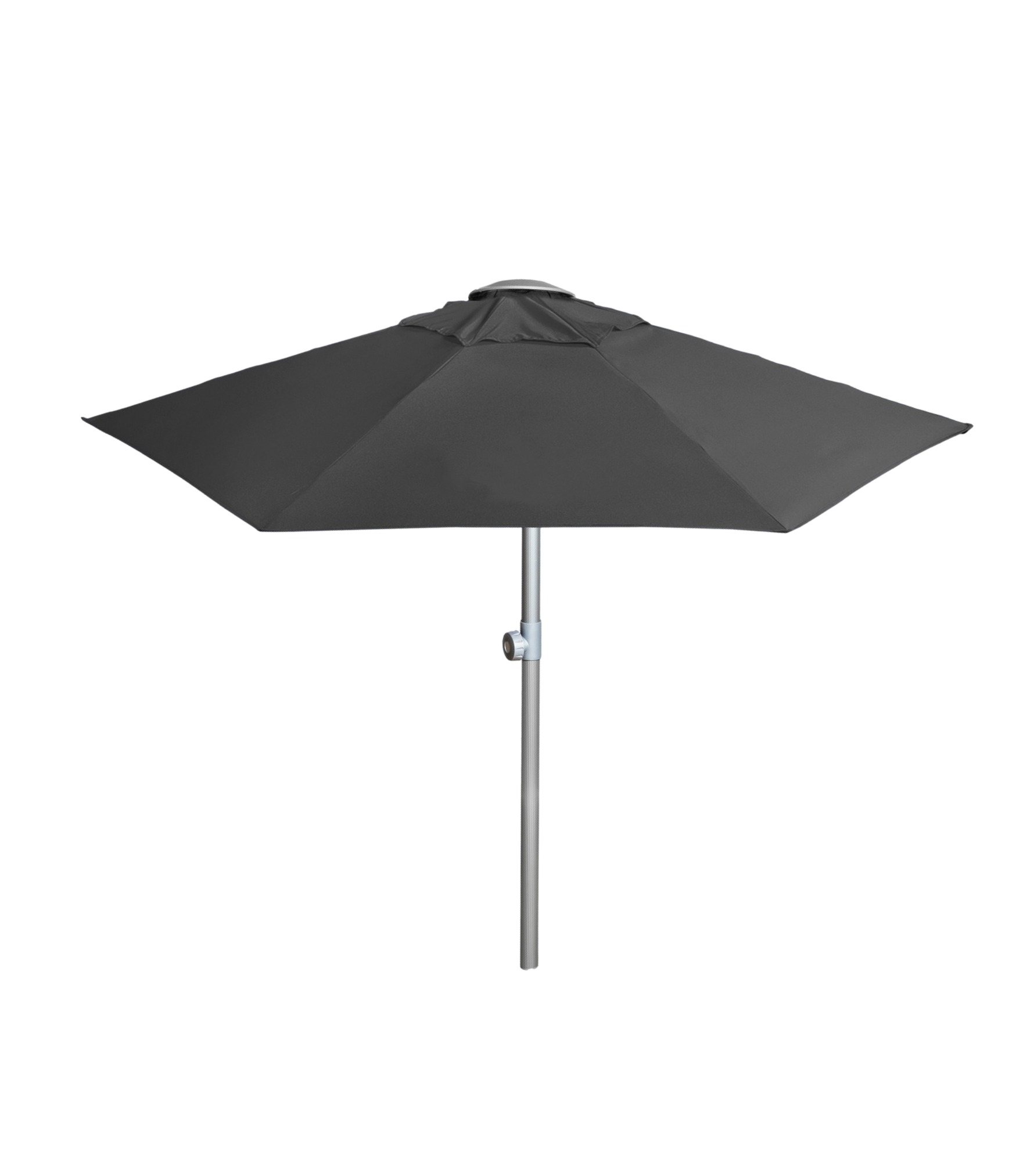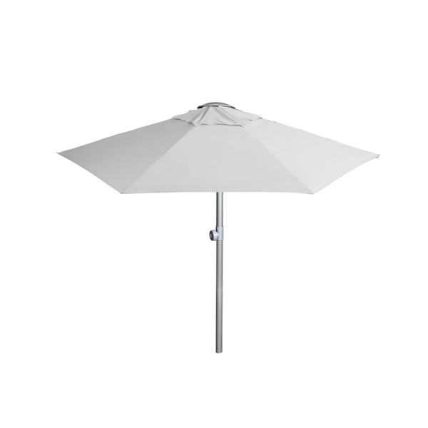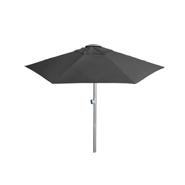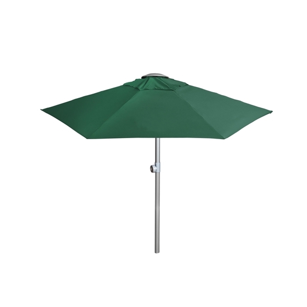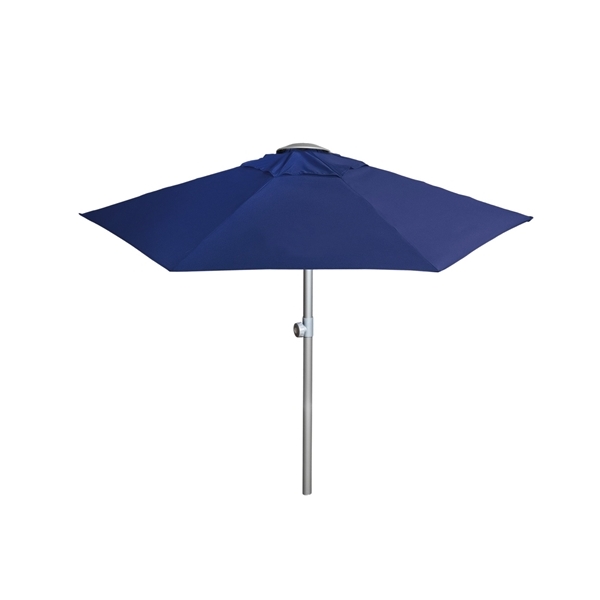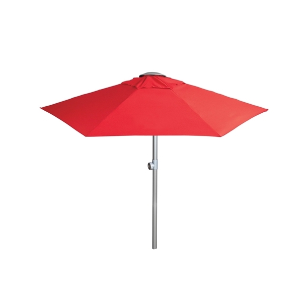 Measuring 7 feet, these 6 paneled umbrellas feature a heavy Olefin cover with UV treatment and a higher fade resistance, wind vent, lightweight silver ribbed frame, no pinch/easy open feature and a telescopic bottom pole.
