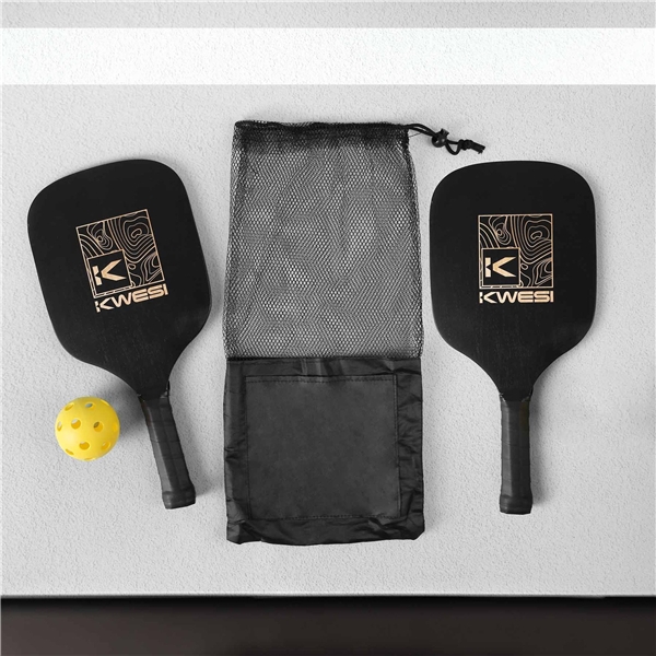 This set comes with two regulation-size pickleball paddles and one ball, featuring an ergonomic grip design for comfortable play.
