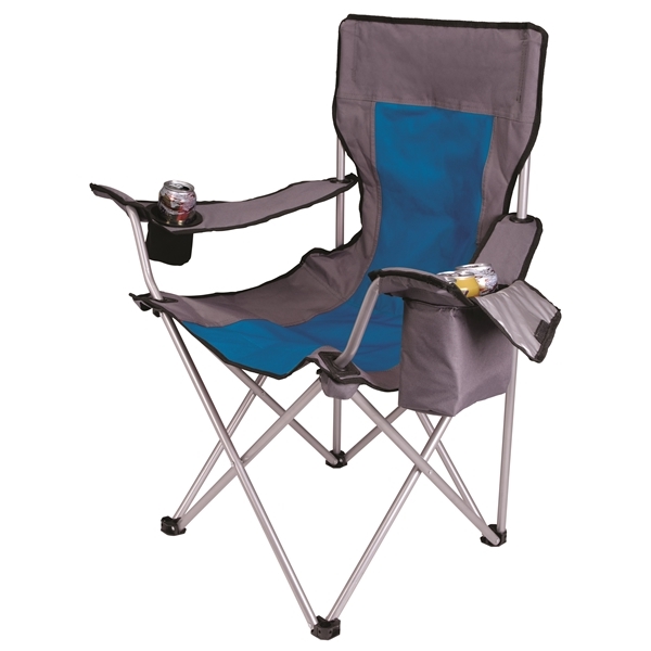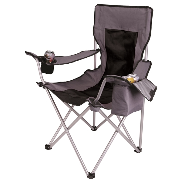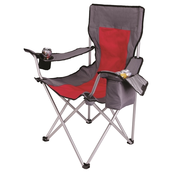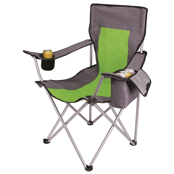Lounge the day away in comfort with the ultimate camping chair. You'll never have to get up with a soft-sided cooler in one armrest and a Koozie® can cooler in the other. When the fun is over, its durable steel frame folds down and easily stores away in the included carrying bag.