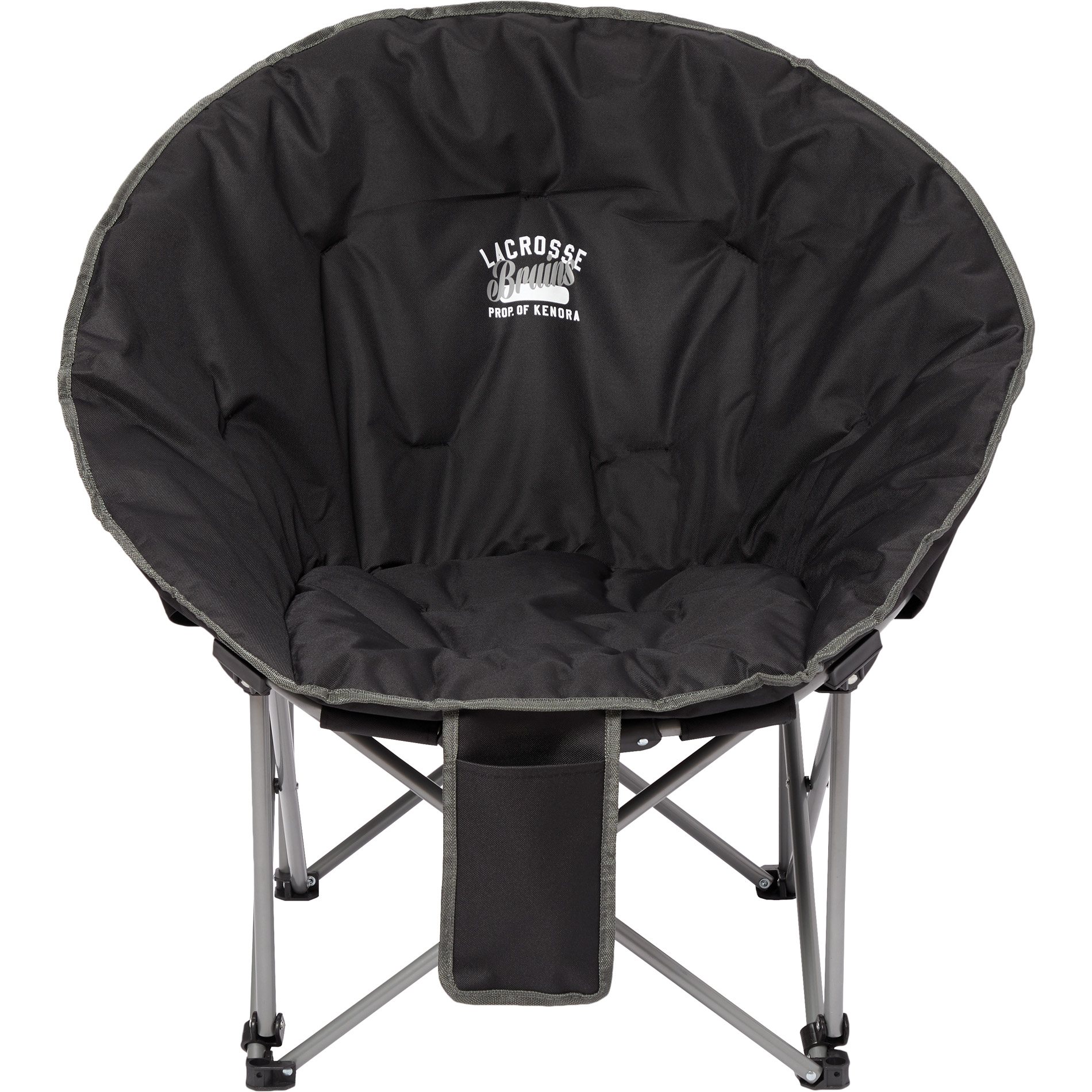 Made from and durable 600D fabric, this chair features a unique and comfortable rounded "moon" design with padded construction and a front tech pocket.