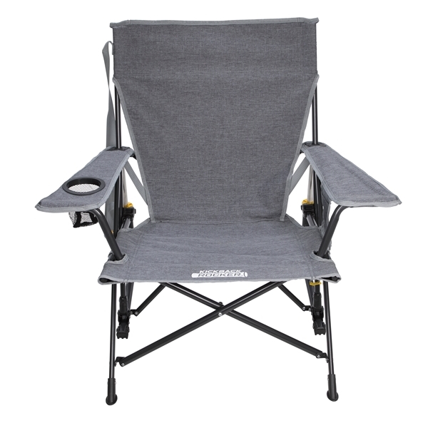 Whether you’re getting the most out of life in the great outdoors or on the sidelines cheering on your favorite athlete, the GCI Outdoor™ Kickback Rocker™ is built for comfort. This compact outdoor chair features a patented technology that delivers a smooth rocking action on flat, hard, or soft terrain. It's built slightly lower to the ground than standard camp chairs, providing a relaxed feeling the moment you sit down. The bagless design makes it easy to pack up and go – just use the built-in carry strap to easily tote it. Supports 250 lbs max. The fabric used on this chair has been tested and complies with California Prop 65 requirements. GCI Outdoor covers this product with a 3-year limited warranty (excluding imprint).