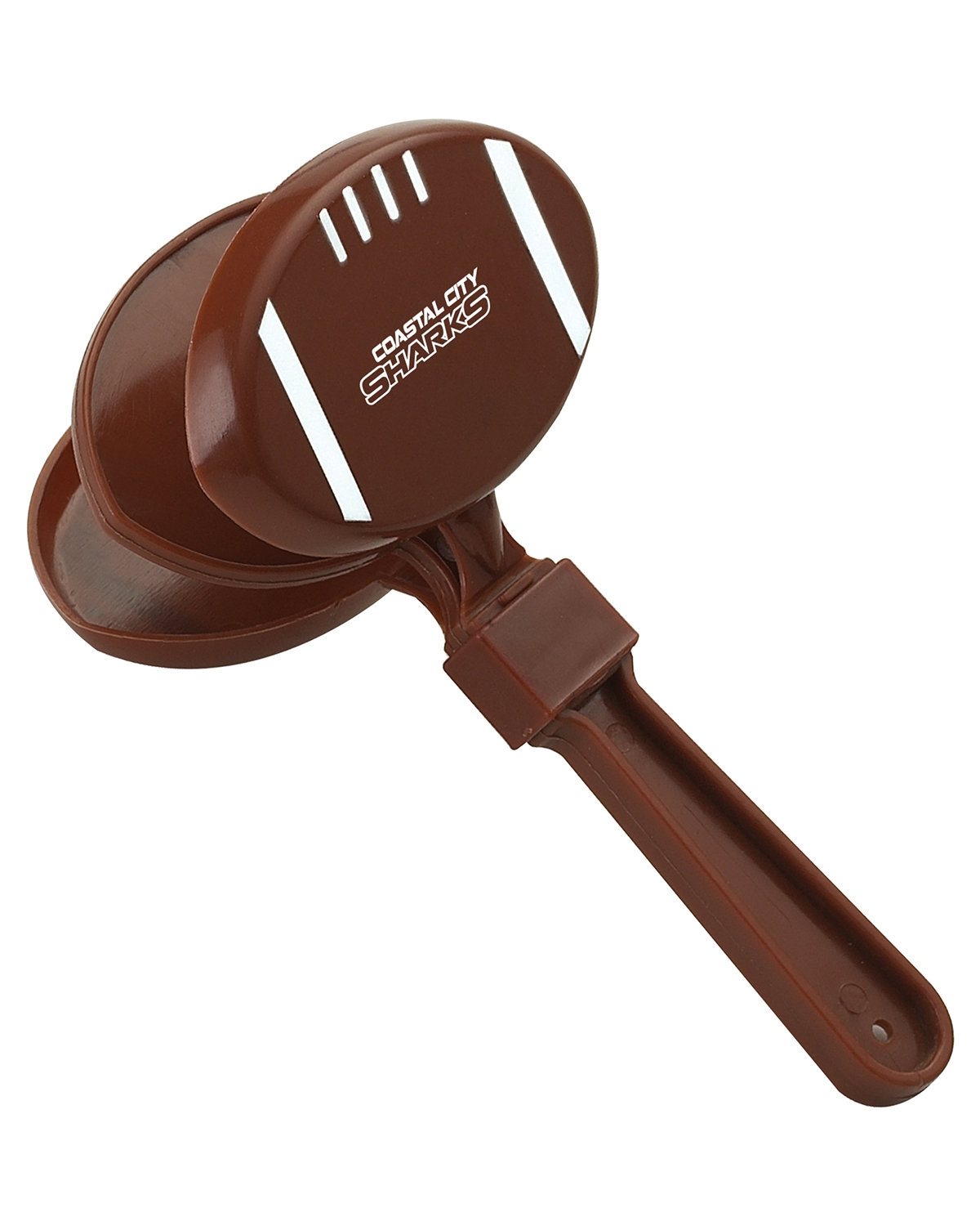 - Football-shaped plastic clappers featuring sport-themed stock art