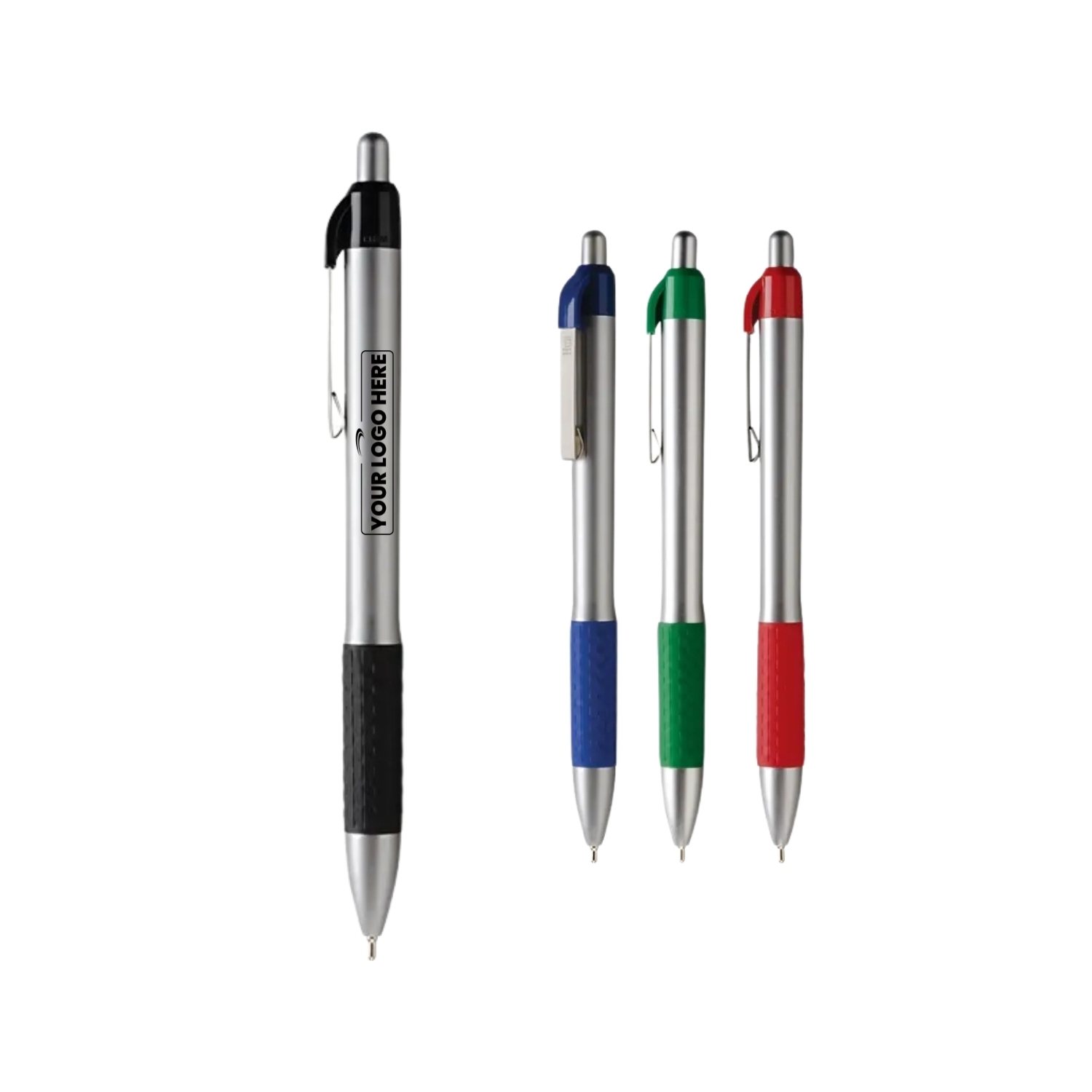 Set of 4 Groove Retractable Ball Point Pens w/ Rubber Grip - Black Ink
