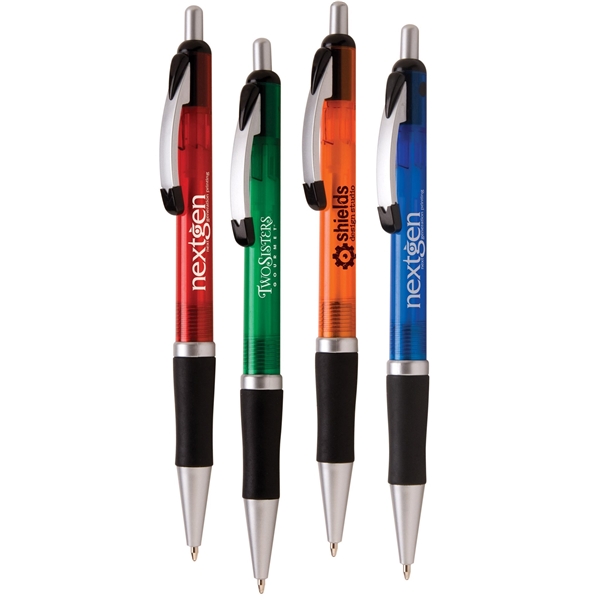 All-plastic construction with the look of a much more expensive writing instrument; Translucent, see-through barrels and black, rubberized writing grips; Features a smooth writing, medium-point