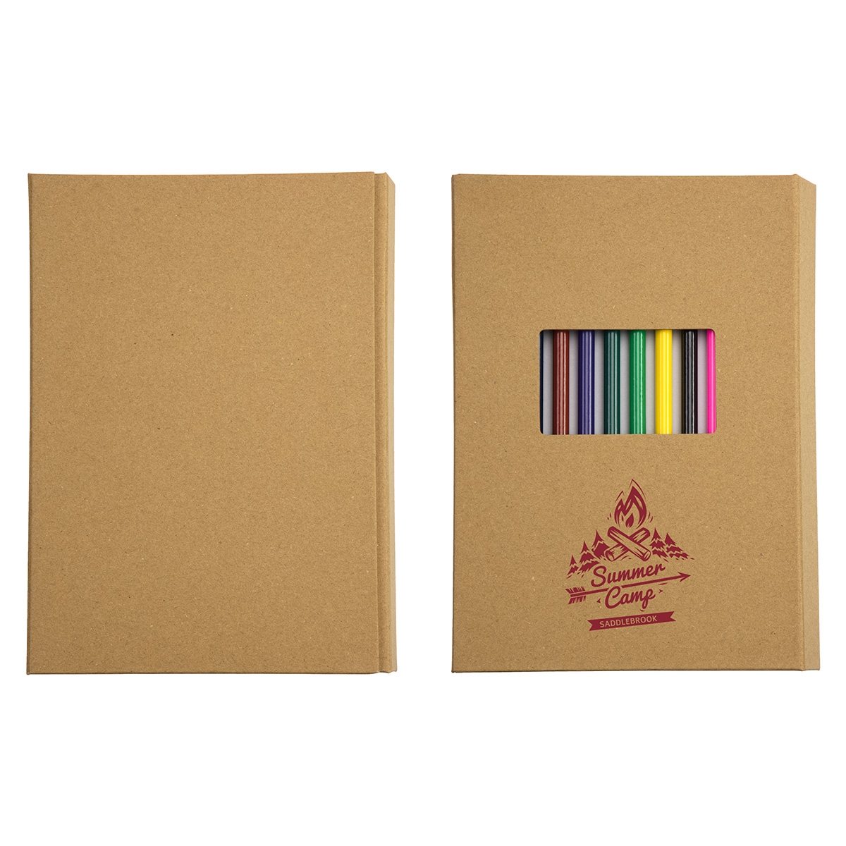 Includes 10 colored pencils secured neatly inside the cover