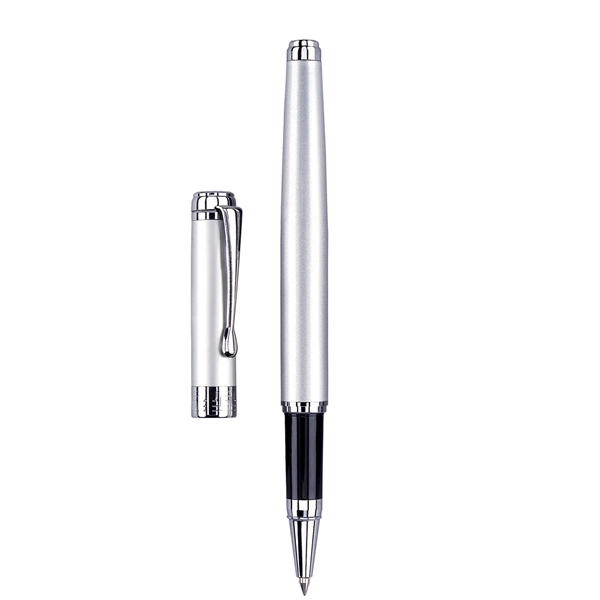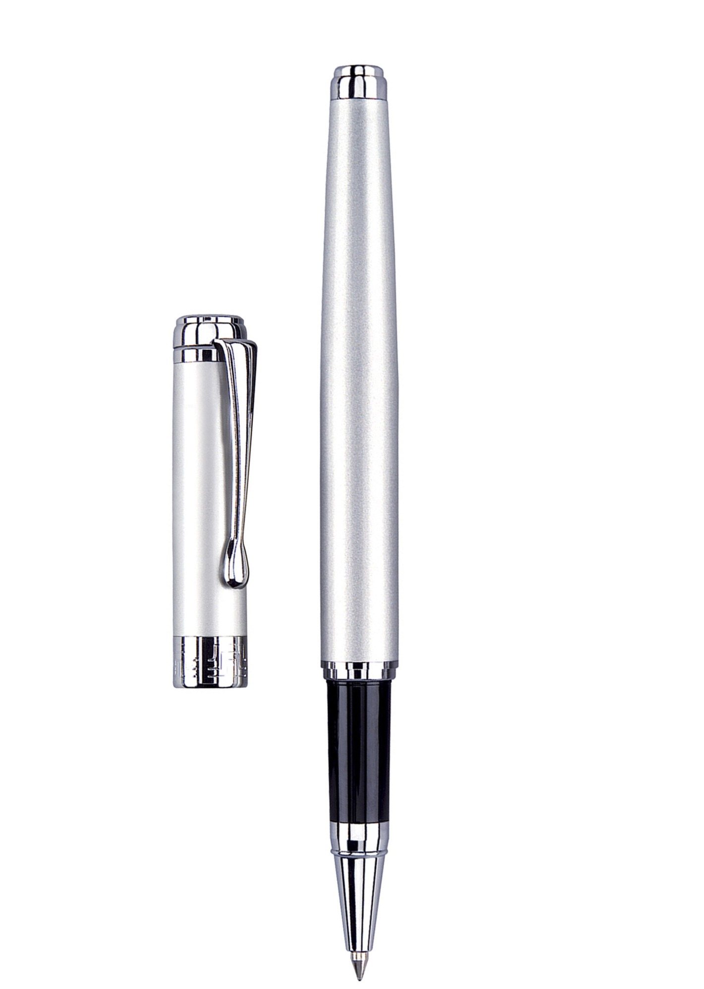 About this Blackpen Cap - off Gel Ink Brass Pen in Matte Silver w / Chrome Points:
