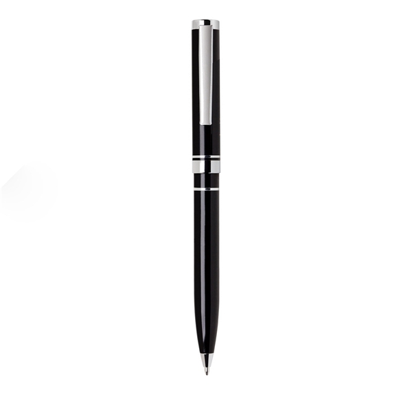 - Twist-action aluminum ballpoint with lacquer or satin chrome finish and polished chrome points.