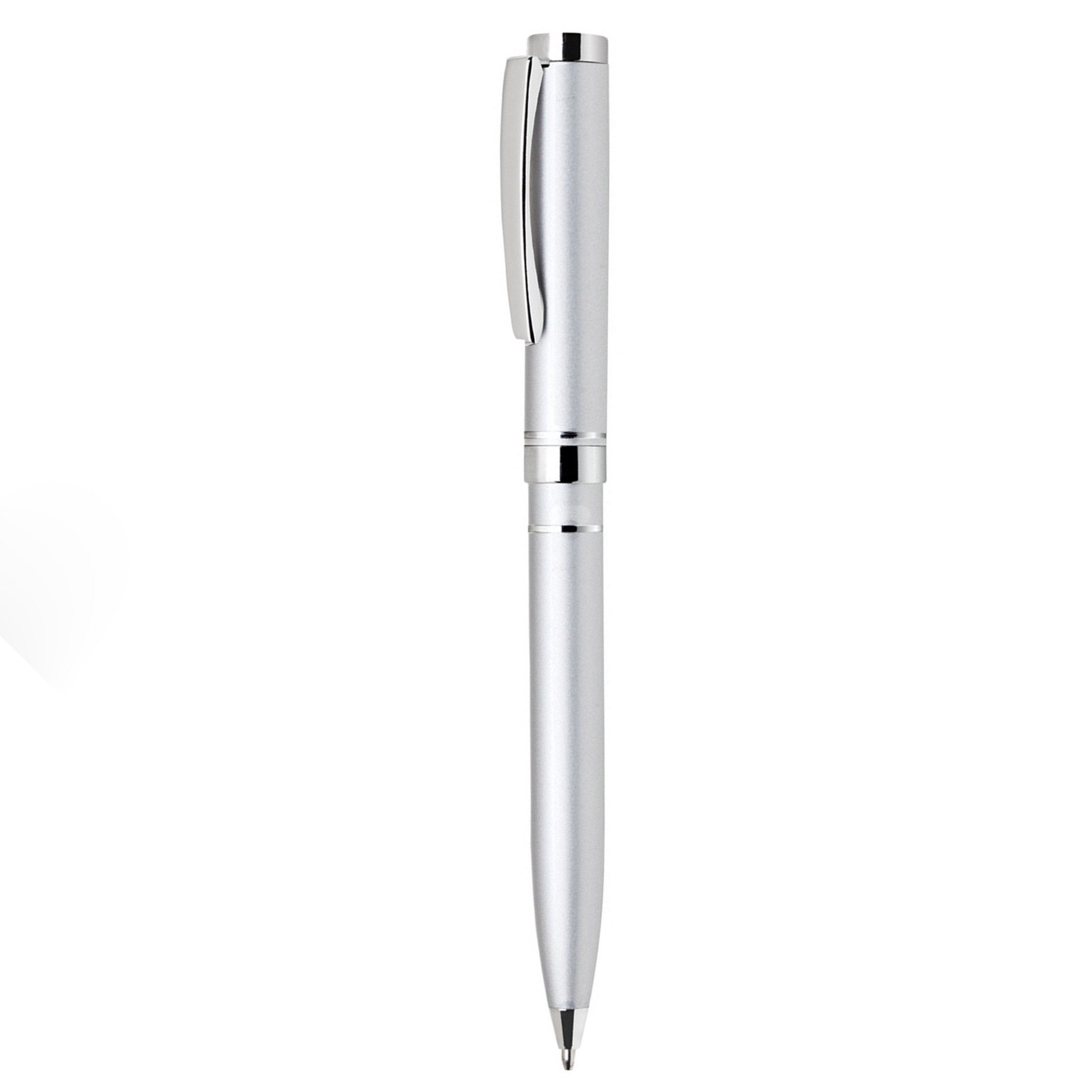 - Twist-action aluminum ballpoint with lacquer or satin chrome finish and polished chrome points.