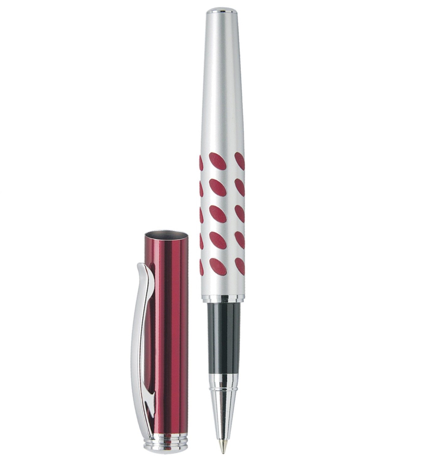 About this Blackpen Cap - off Brass Gel Ink Red Pen W / Comfort Grip And Chrome Points: