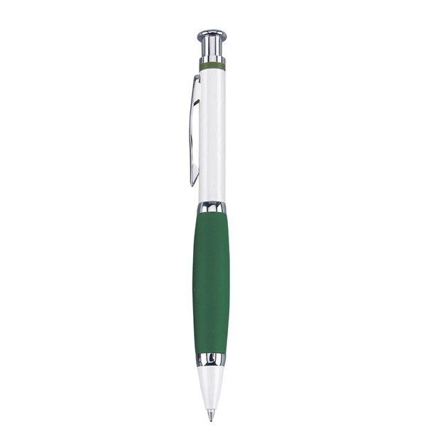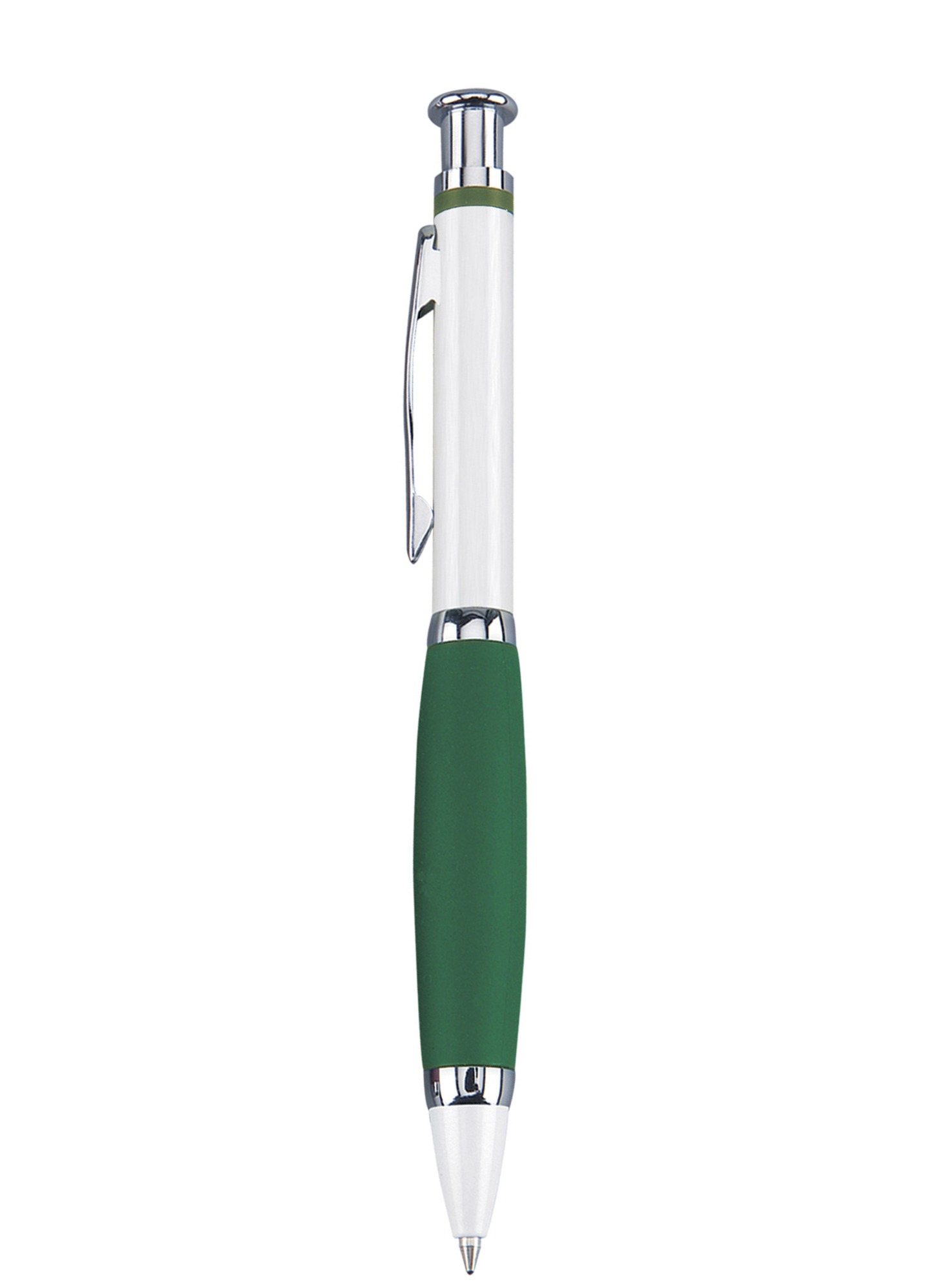About this Blackpen Brass Click - Action White Ballpoint Pen w / Green Comfort Grip, Chrome Points: