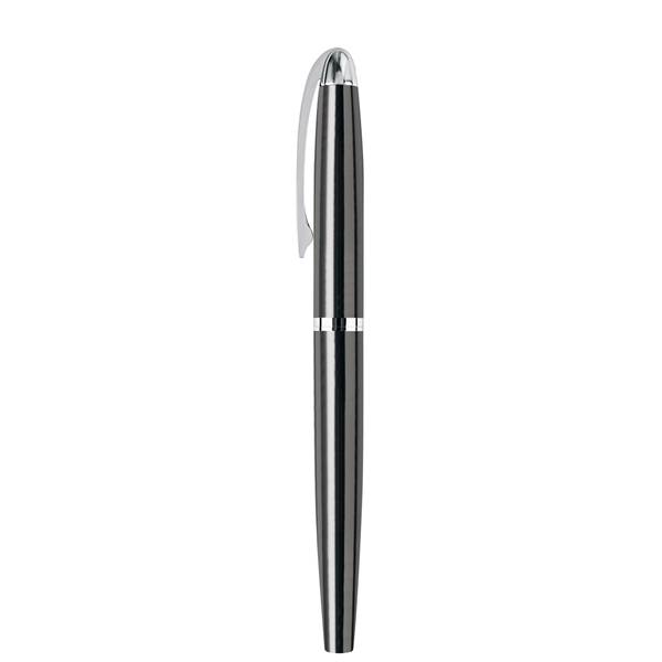 About this Blackpen Cap - off Gel Ink Brass Pen in Gunmetal w / Spring Clip, Chrome Points: