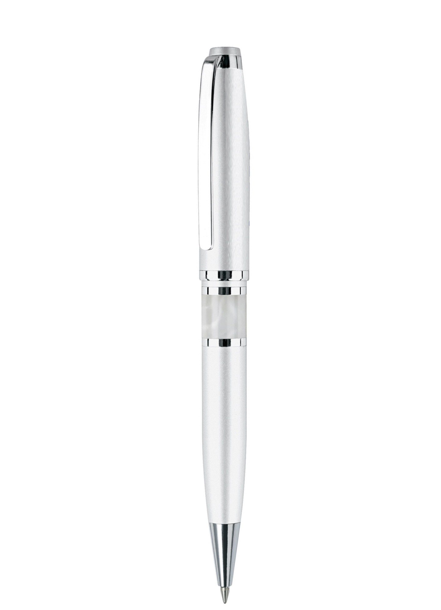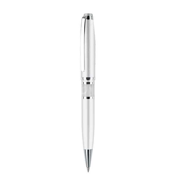 About this Blackpen Twist - Action Satin Brass Ballpoint Pen w / White Marble Grip and Chrome Points: