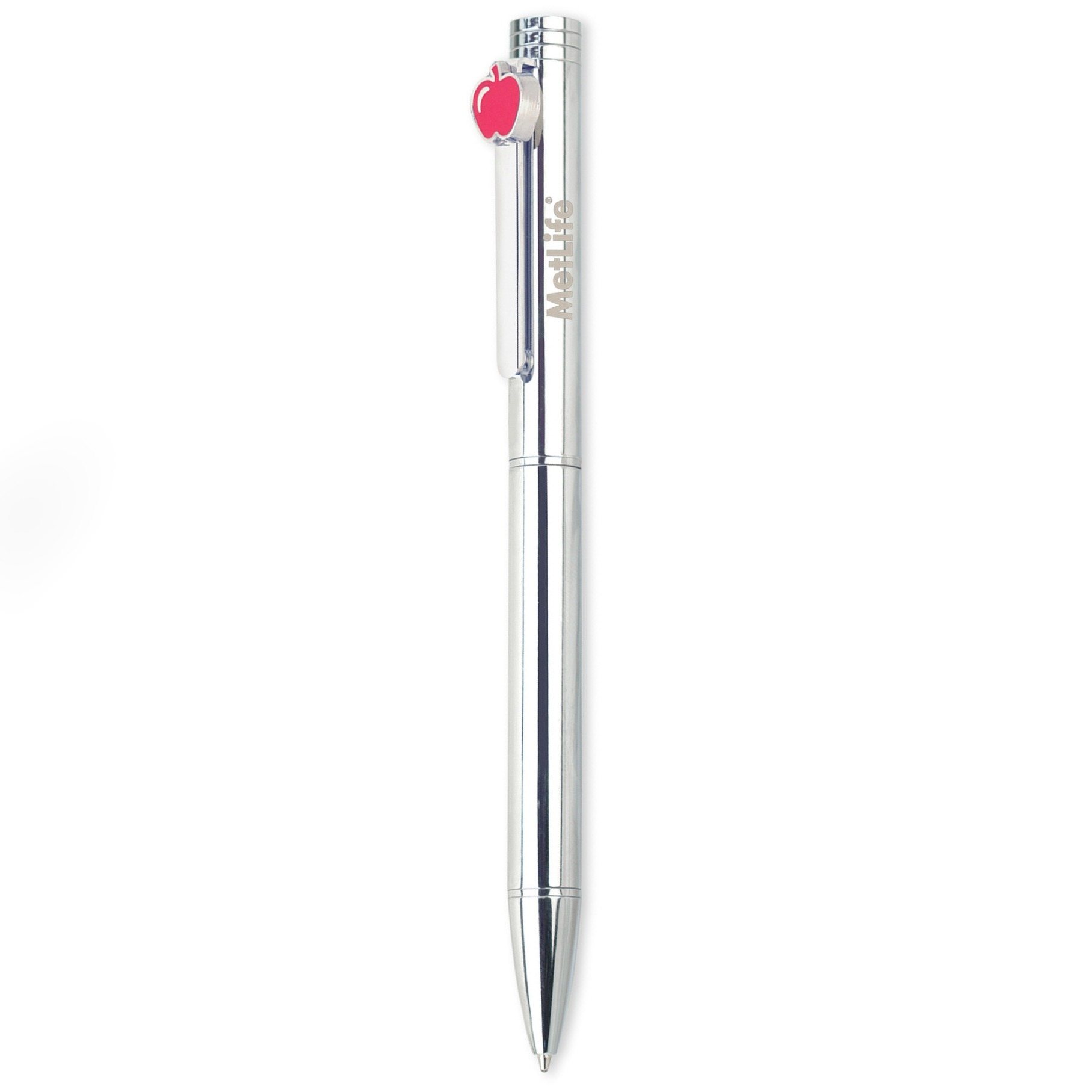 About this Silver Twist - Action Brass Balloint Pen with Red Apple Icon: