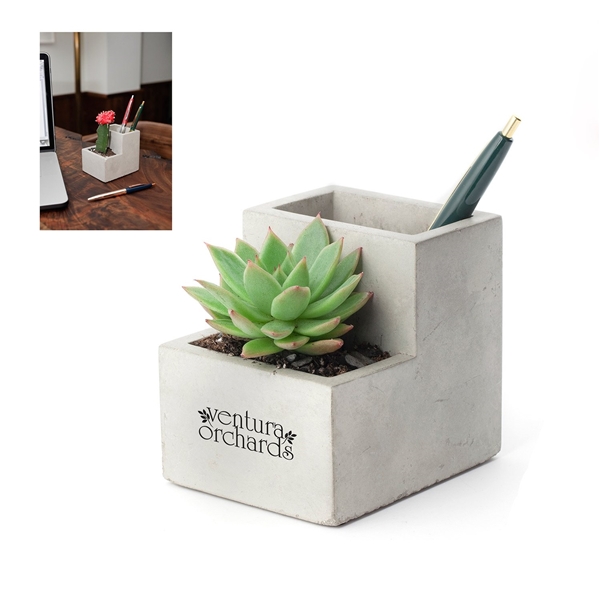 Bring some greenery to your office or home with this concrete planter and pen cup with felt feet to protect your tables.
