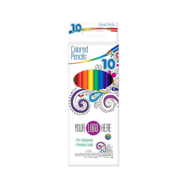 10 Pack Color Therapy Pre-Sharpened Colored Pencils with Full Color Decal