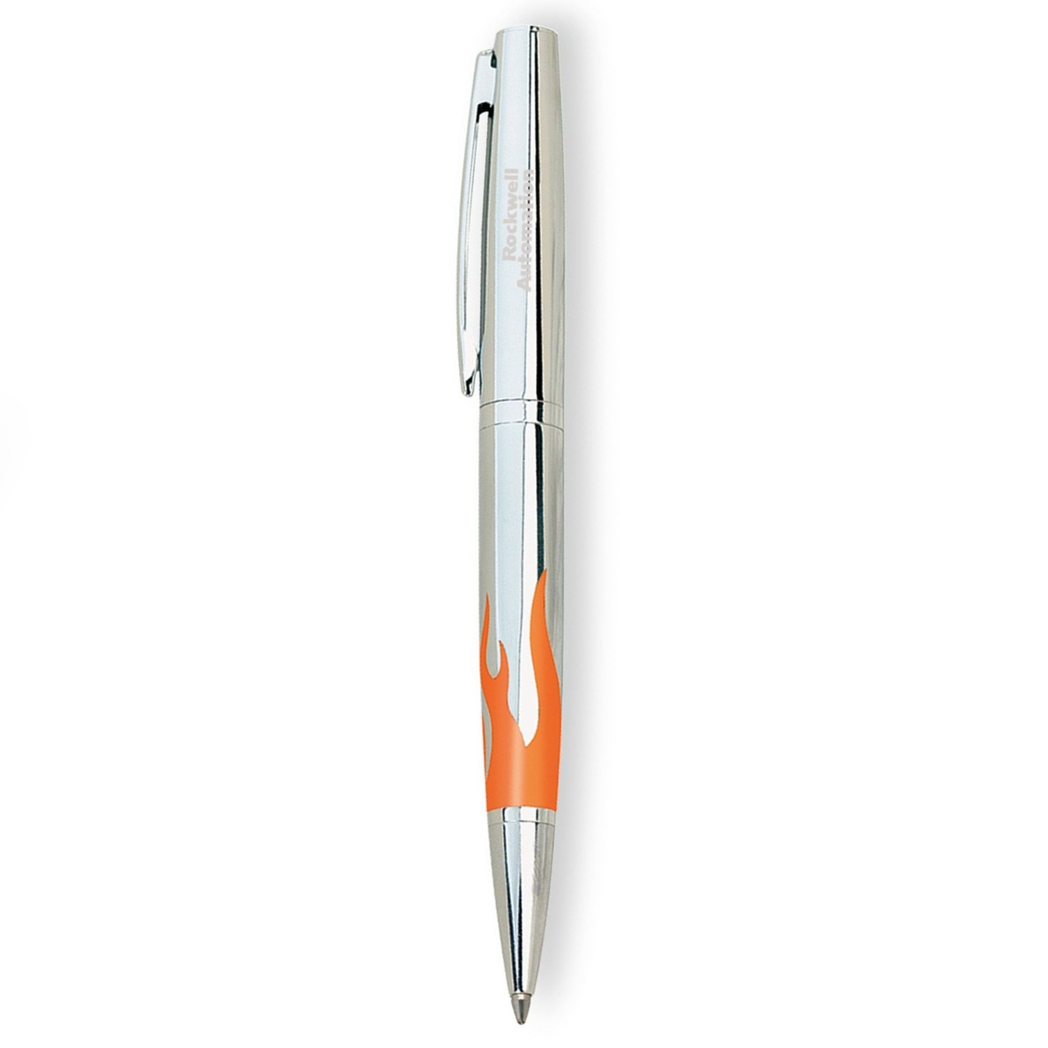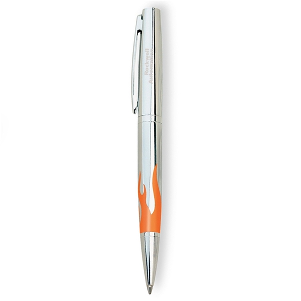 Orange Flame Silver Twist-Action Ballpoint Pen
