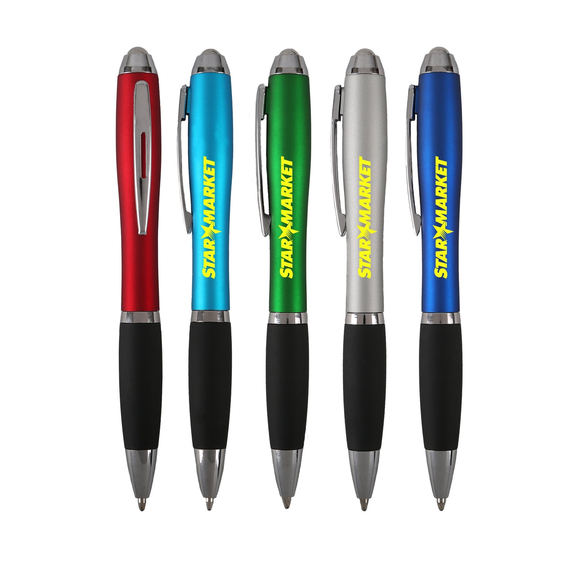 Matte metallic colored barrel & black grip with chrome ferrule, plunger, clip, & ring