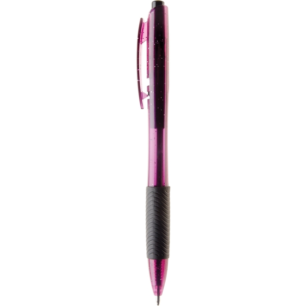 Hourglass barrel and ribbed grip for writing comfort.