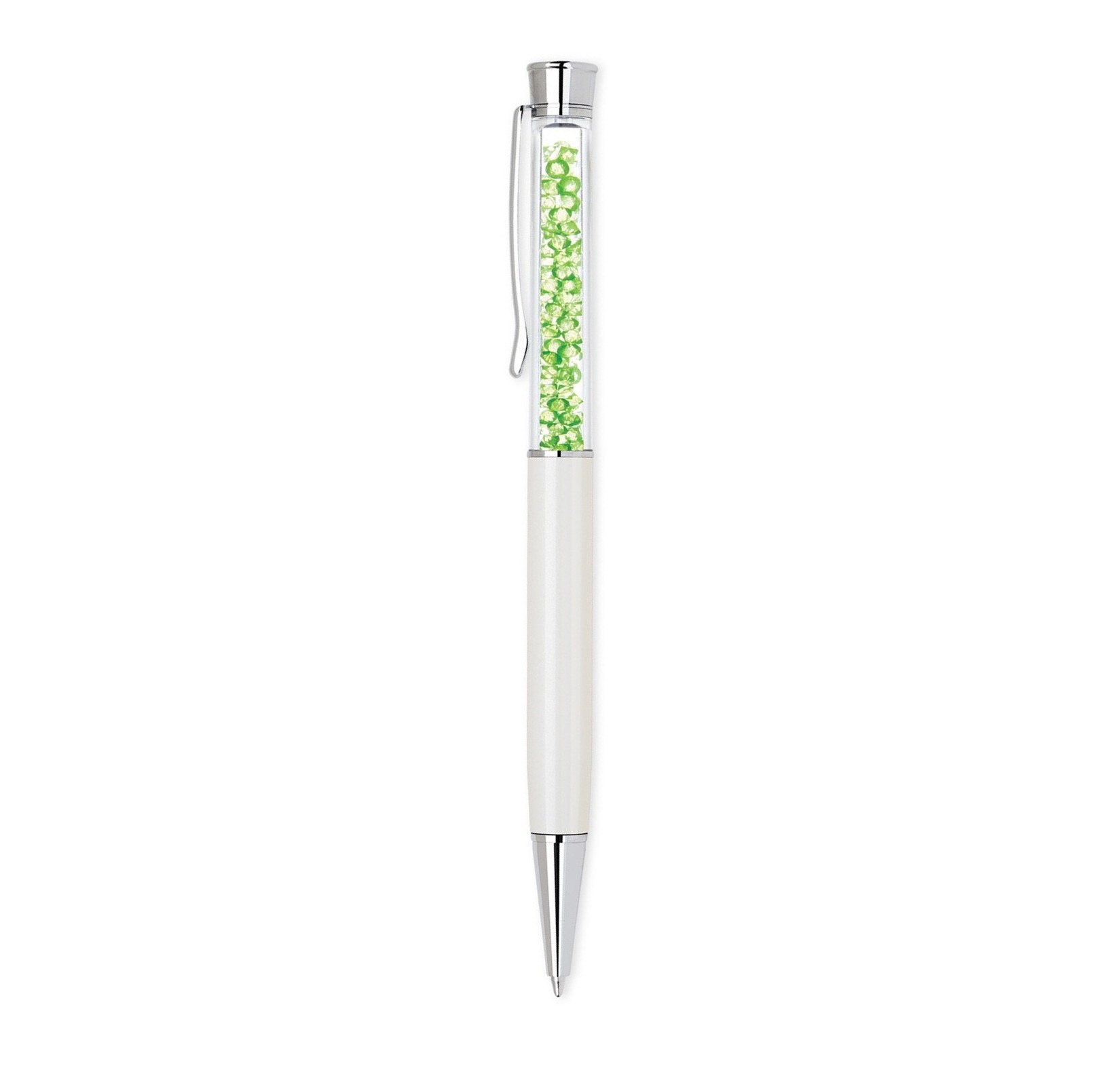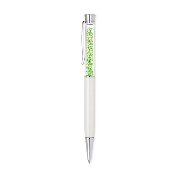 Twist-action ballpoint pen with matching barrel and crystal stones.