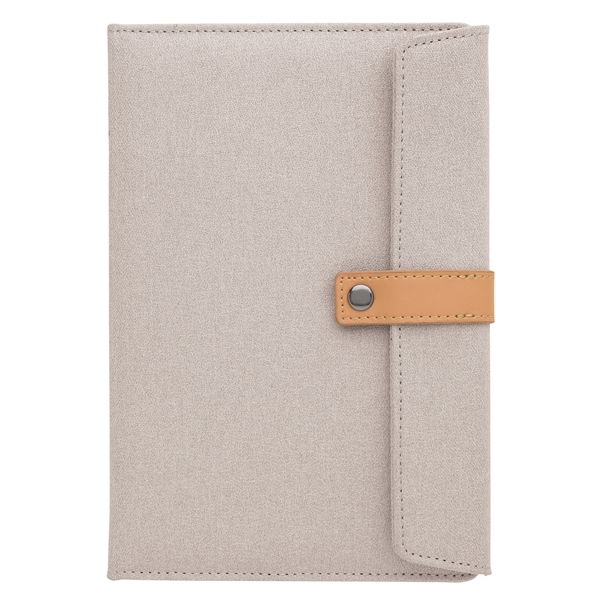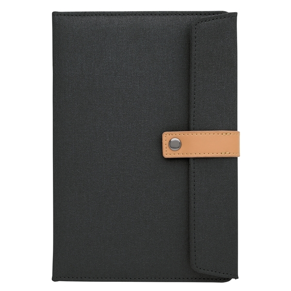The leatherette strap and two-tone polyester cover give this classic journal a modern feel. Use it at your next meeting or for keeping track of your to-do list.