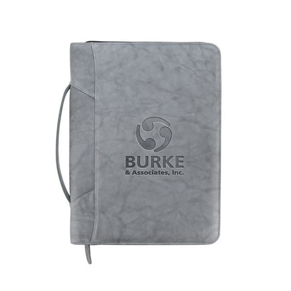 Genuine leather zippered padfolio with soft fabric lining