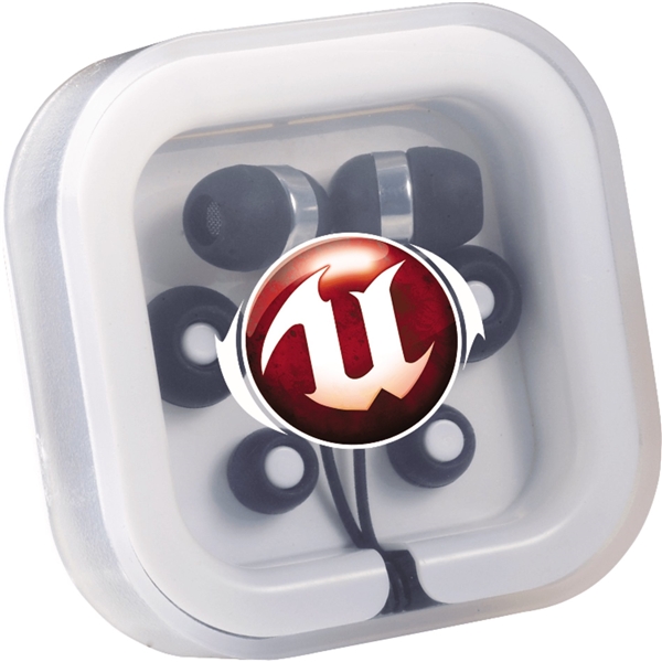 This set includes three interchangeable soft rubber earbud covers, a plastic case with cable storage, a standard 3.5mm audio jack, and a 38" earbud cable.