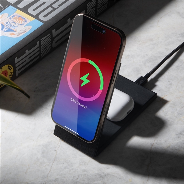 Charge your iPhone flat, or simultaneously with your AirPods in stand mode