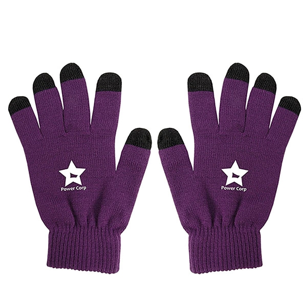 A pair of five finger universal touch screen gloves Type with all five fingers, not just one Conductive fibres in fingertips interact with touch screen devices Keep your fingers warm while operating your touch screen devices Hand wash in cold water only (care instructions included) Compatible with most touch screen devices: iPhone®, iPad®, iPod® Touch, Android phones, etc