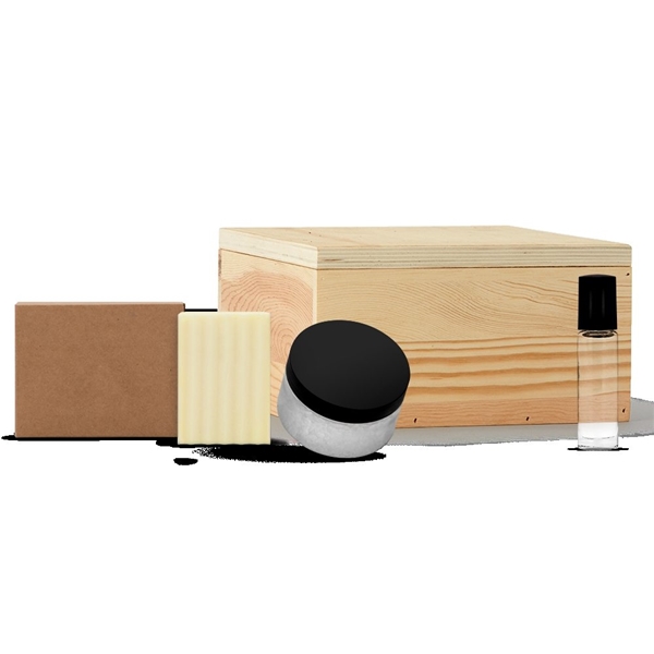 A rustic wooden box engraved with your branding will be the start of their self-care journey.