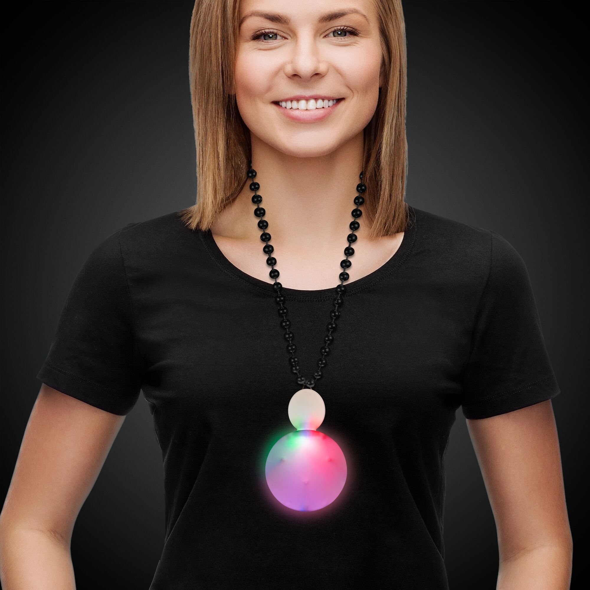 replaceable batteries included & installed. Beads or lanyards can be attached to the metal loop to create a fun light up necklace perfect for your nighttime event.