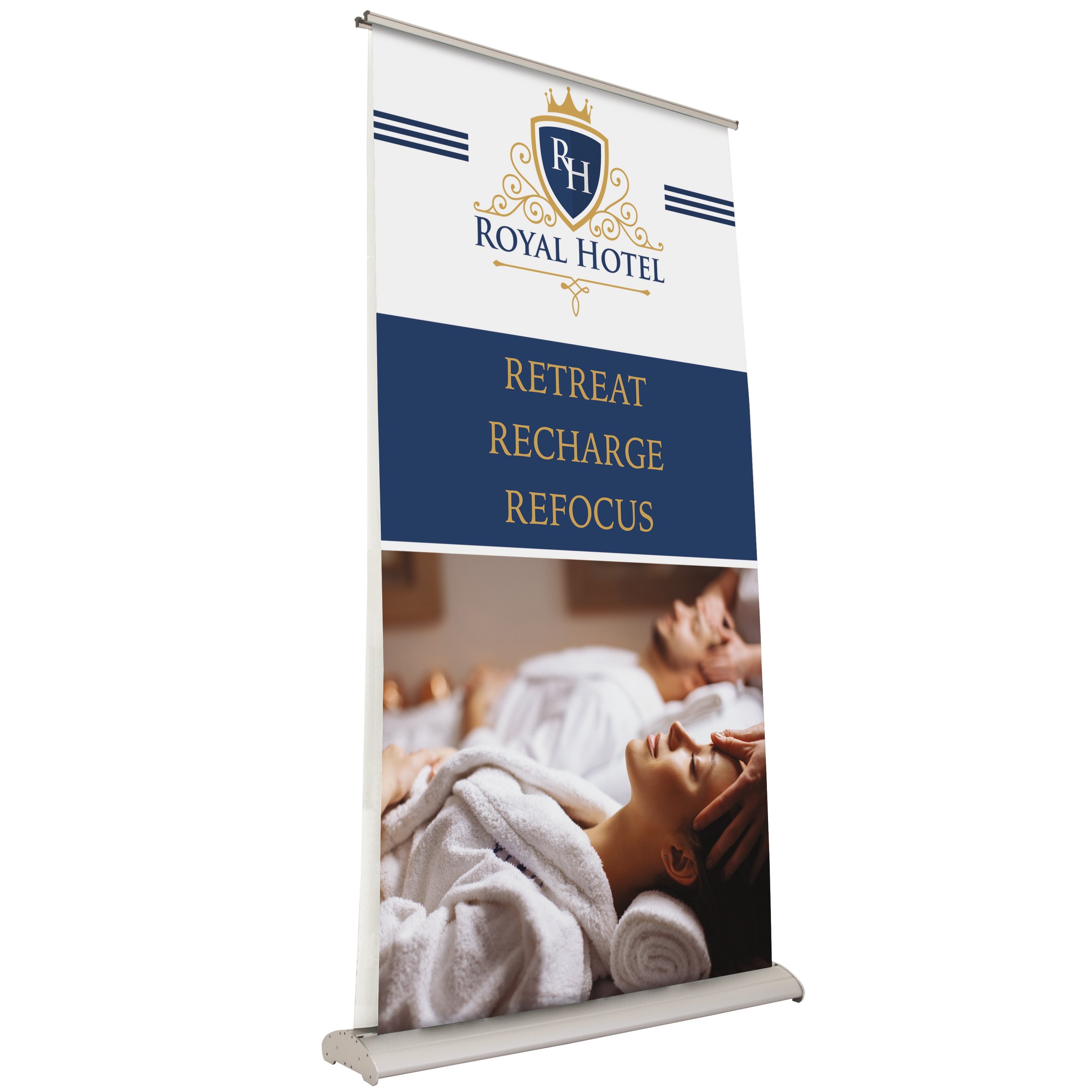 Each banner is printed single-sided; double-banner retractors feature two banners