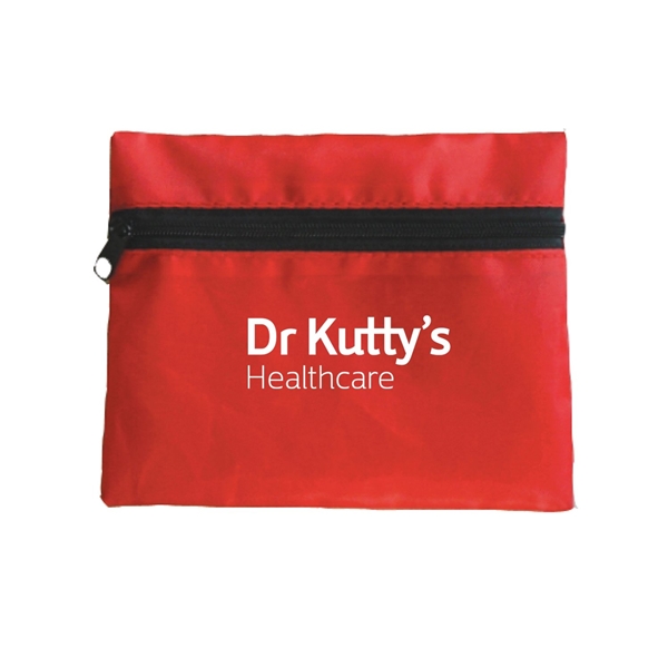 By far the best-packed "first aid kit" - not just some adhesive bandages, but scissors and tape and gauze. You could actually use this for an actual injury. Case/zipper is well made. Scissors actually work.