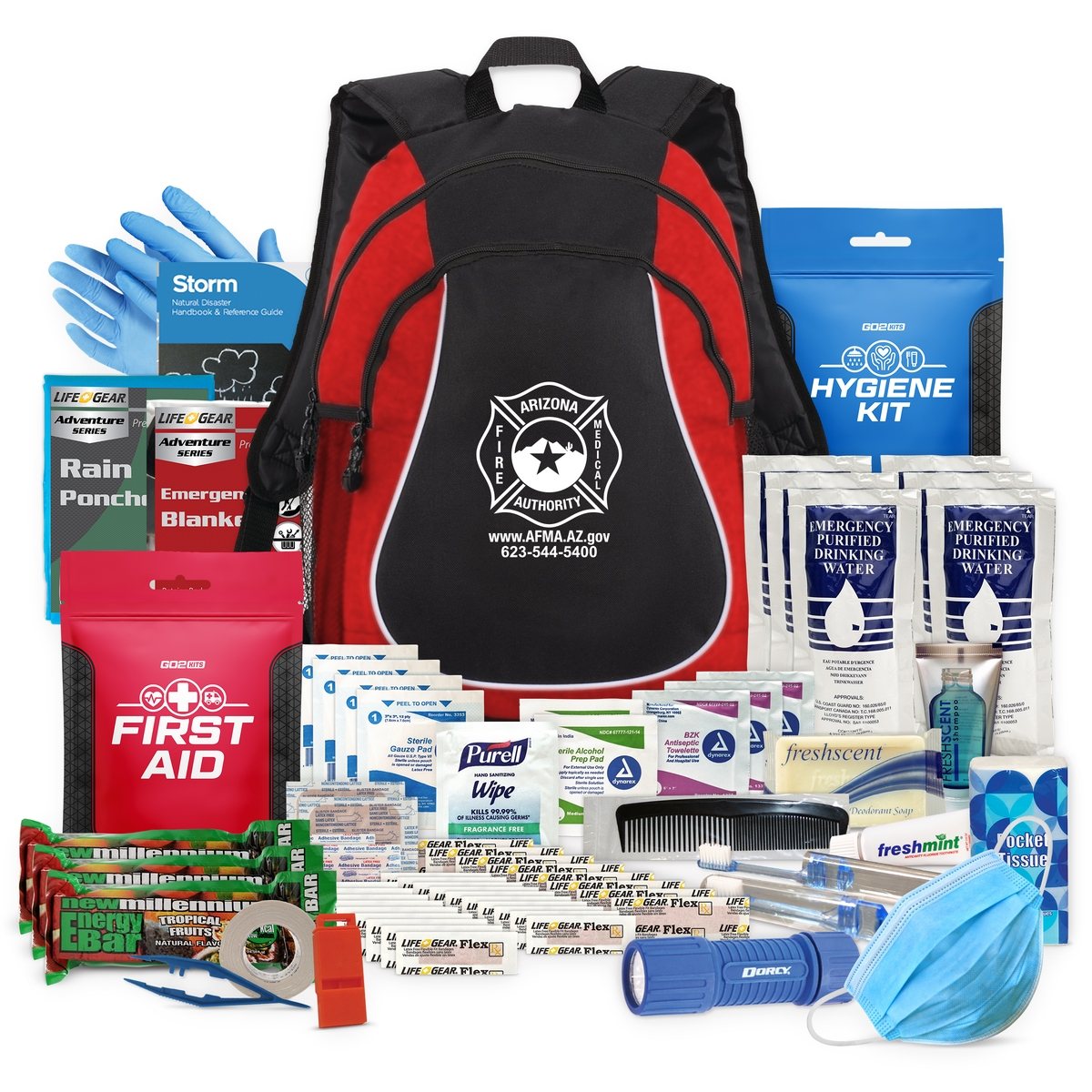 This backpack has essential survival tools we hope you'll never need. Share with a partner or use the light that best fits your situation.